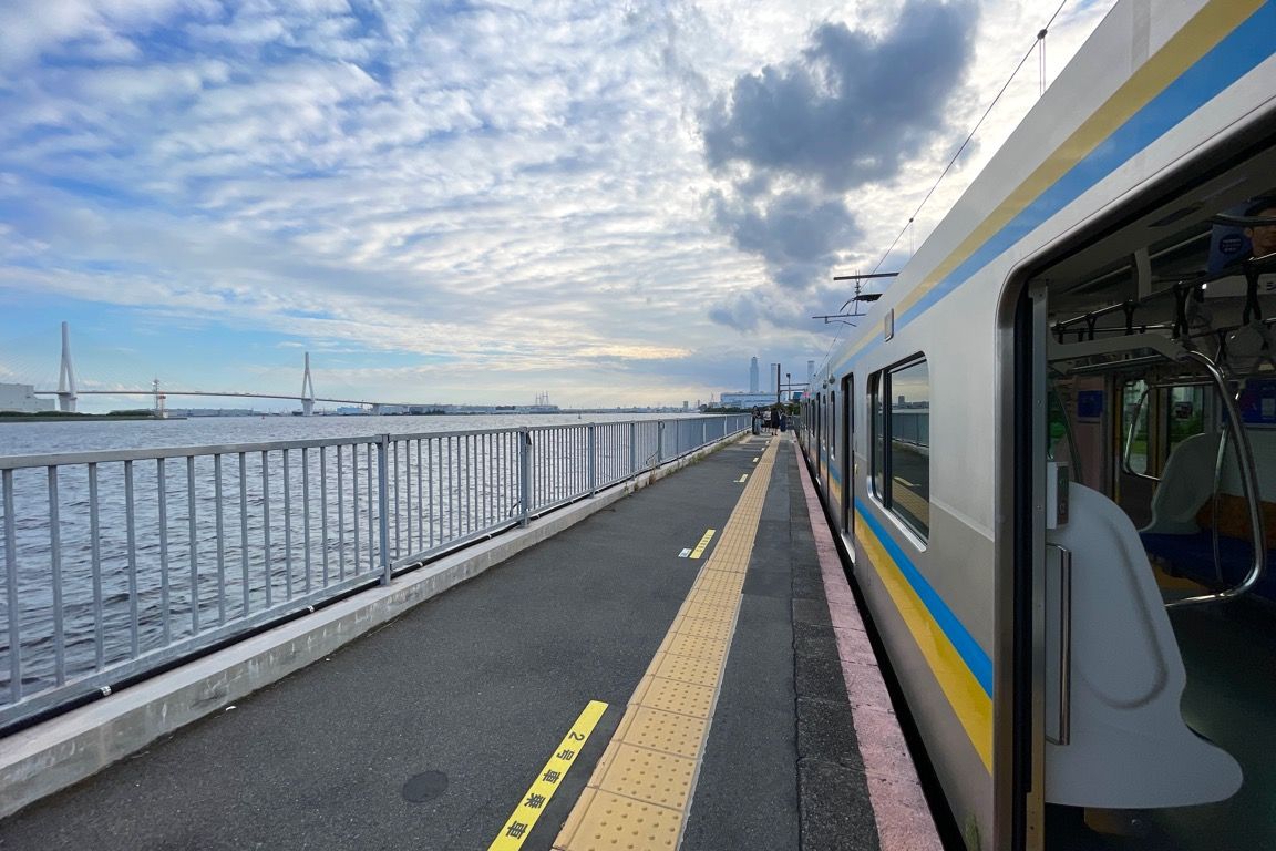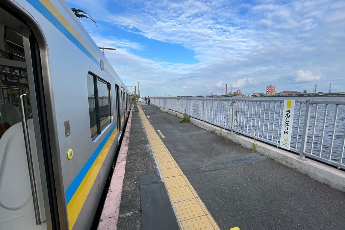 終点の海芝浦に到着。ここでは列車の折り返しまで15分滞在できる。終点まで乗車する人も多く、海芝浦もまた観光地の様相を呈していた。驚くことに半数以上は鉄道ファンではなく、この駅へ観光に来た人達のようだった。中にはデート中のカップルらしき人たちもいた。ここからの景色は、横浜みなとみらいや神戸元町にも負けない魅力があると個人的には思っている。