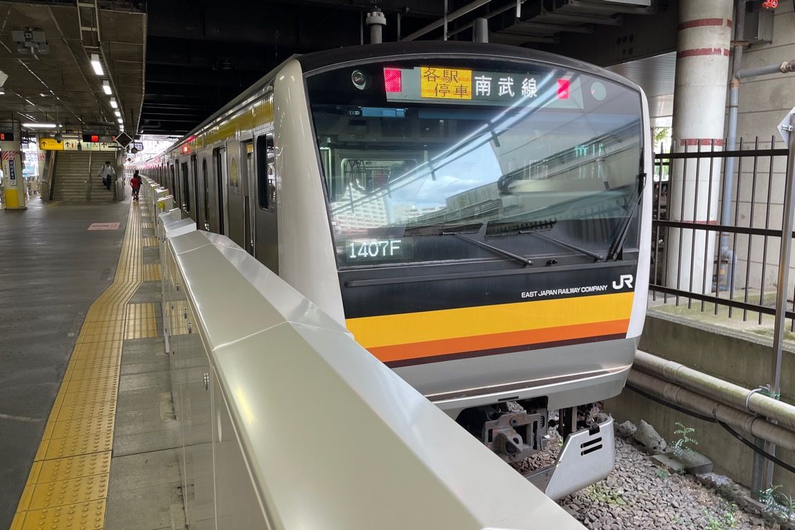 尻手でしばらく列車を待っていると、乗ってきた列車の後続となる各駅停車立川行の到着と同時に南武線浜川崎支線の列車も同時に駅に到着した。乗り換える人で一時的にホームがごった返し、乗客が入れ替わる。