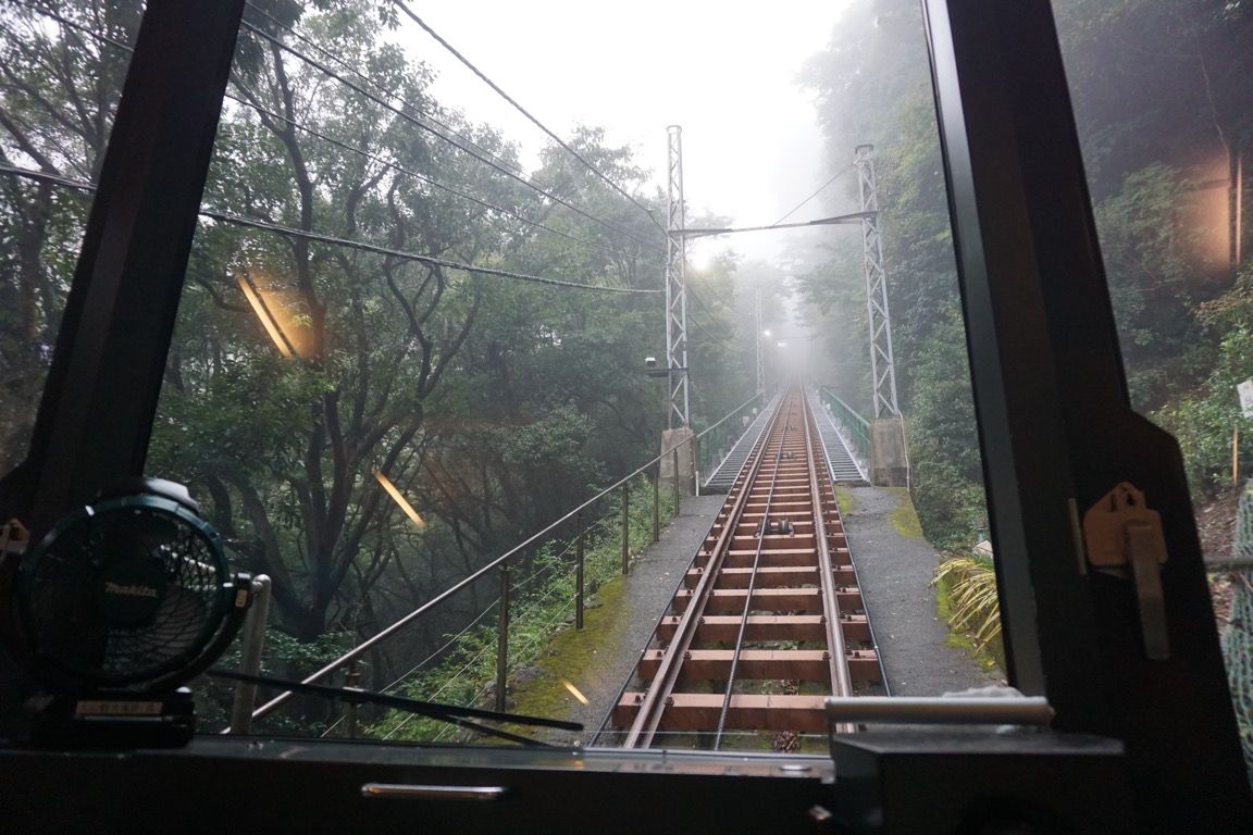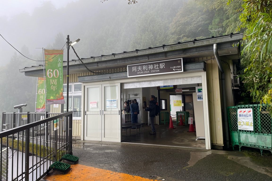 阿夫利神社駅は小さな展望台のようになっており、晴れていればここからの眺望を楽しめるらしい。この日は雲が広がっていて眼下の景色は見えなかったものの、到着したときには一面に幻想的な雲海が現れ、思わず乗客から歓声が上がっていた。