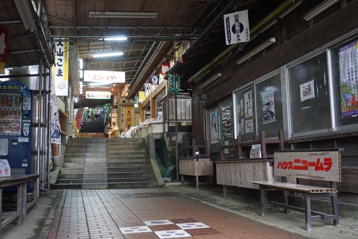 昔ながらの参道の両脇に商店が続く光景は、四国の金刀比羅宮や江の島の参道を思わせる。階段を上り、店先を通り過ぎ、また階段を上り……といった動作を繰り返していく。都心から1時間半ほどで来られる場所とは思えない、昭和にタイムスリップしたかのような懐かしい雰囲気が漂っていた。この日は天気が優れなかったため人影もまばらだったが、晴天の週末であればもっと賑わっているはず。紅葉の見ごろや年始は、ここも多くの人で賑わう。