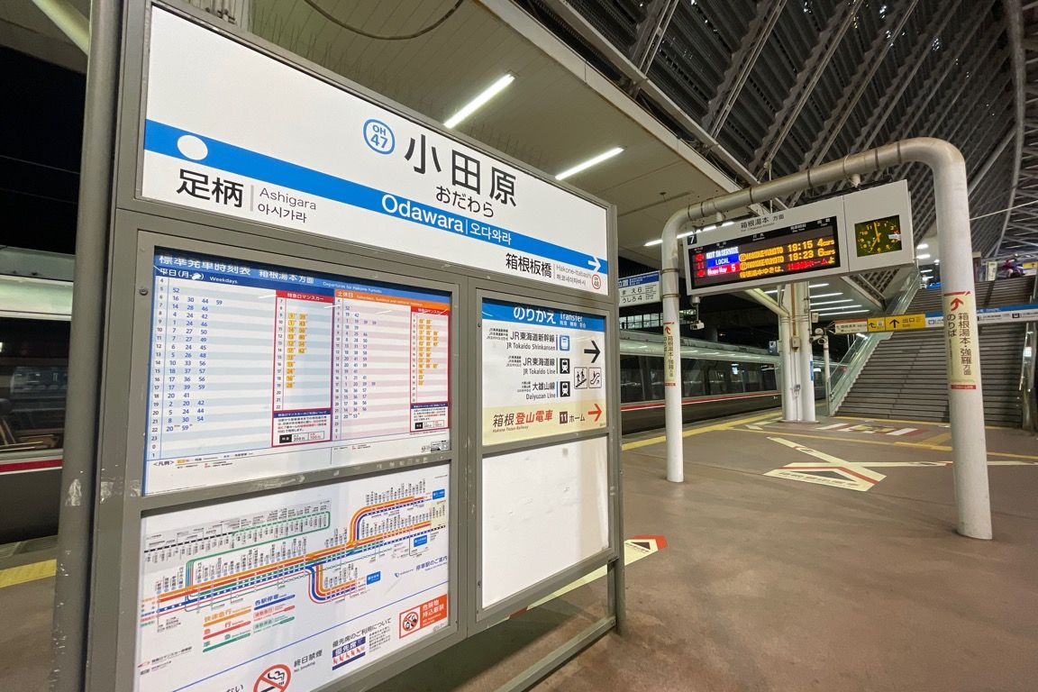 秦野を出ると、次はいよいよ終点・小田原。列車は渋沢、新松田、開成を軽快に通過し、新宿からおよそ1時間20分で小田原に到着した。こうして、小田急小田原線をほぼ1.5往復した1日目の行程も終わりを迎える。