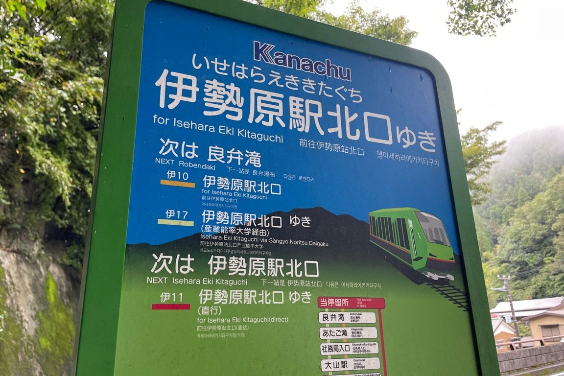 というのも、伊勢原駅北口〜大山ケーブル間には、沿線の停留所にこまめに停車する普通便に加え、途中停留所に一切停まらない直行便が土休日のみ運行されている。観光客向けのダイヤで、伊勢原駅北口発は午前中に4便、大山ケーブル発は午後に3便の設定。せっかくなら、往路とは違うバスに乗る方が旅としても面白いのであえてこちらを選んだ。