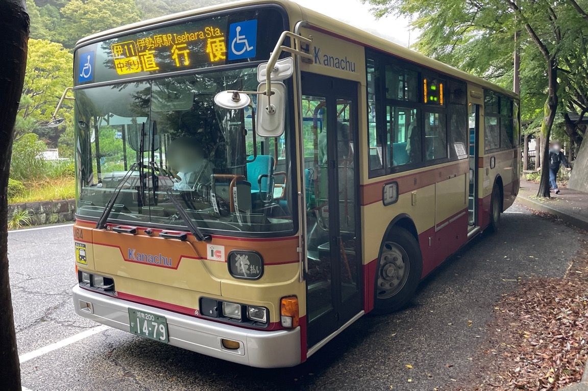 フリーきっぷを購入した後は、北口にある大山行きのバスのりばへ。ここから神奈川中央交通の路線バス、伊10系統大山ケーブル行きに乗車した。