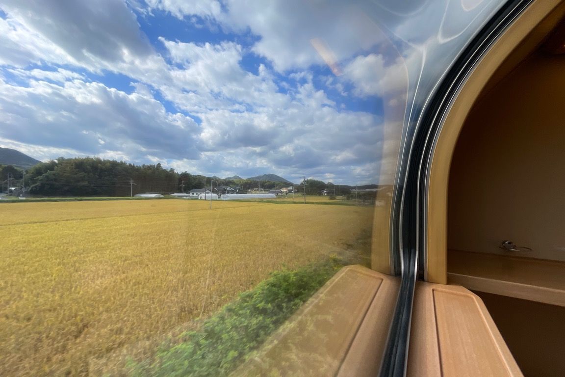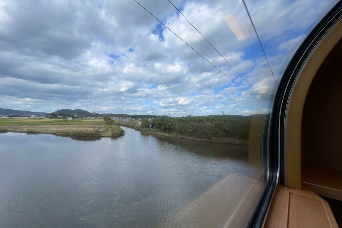 山陰本線を快走し、列車は松江の市街地へ差し掛かる。広がる街を眺めながら高架橋を進むと、まもなく松江に到着した。松江を過ぎると、終点の出雲市まではあと2駅。そろそろ身支度を整え、部屋の片づけを始める。名残惜しさが募る。いっそこのまま山陰本線をひた走り、九州まで連れて行ってほしいとすら思う。しかし、電化区間や車両の規格の都合で、それは叶わない。ただ、妄想するだけなら自由である。