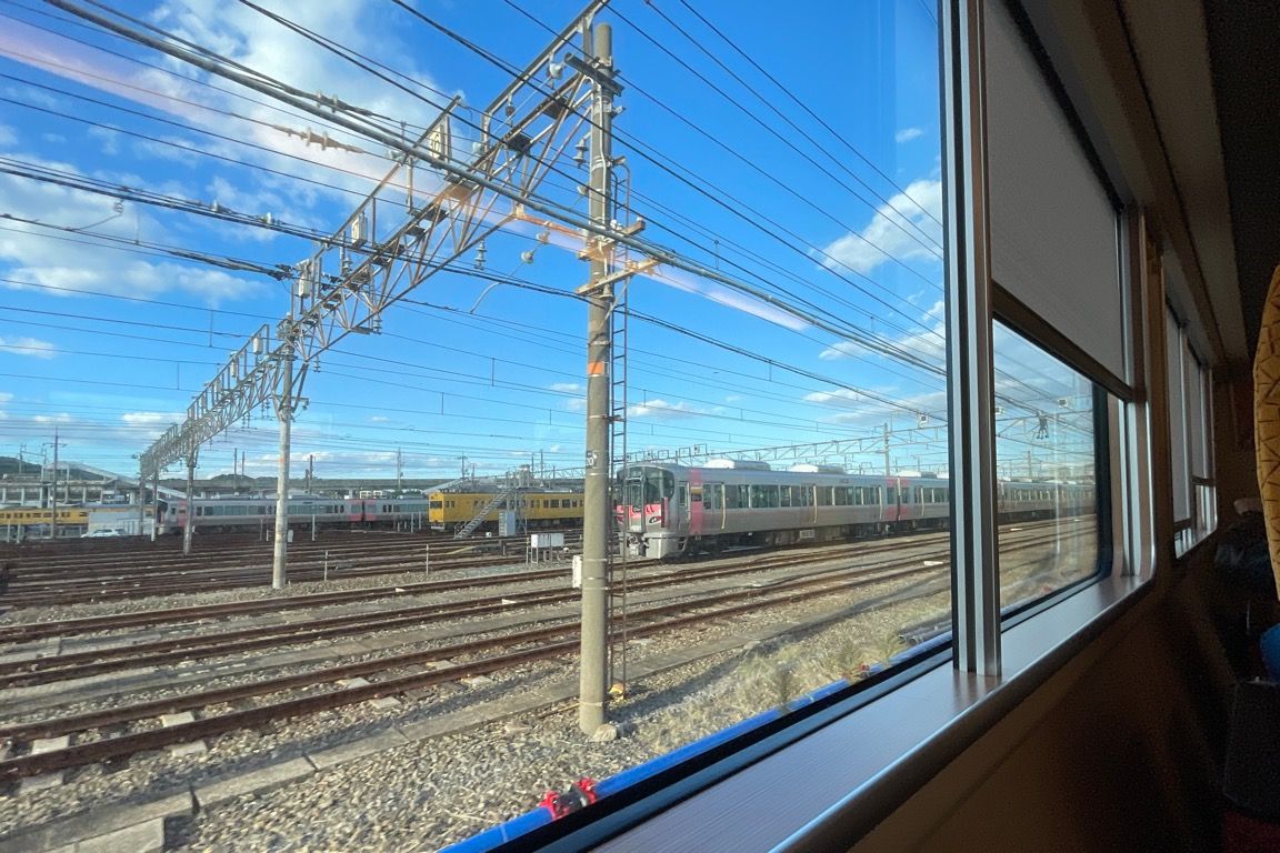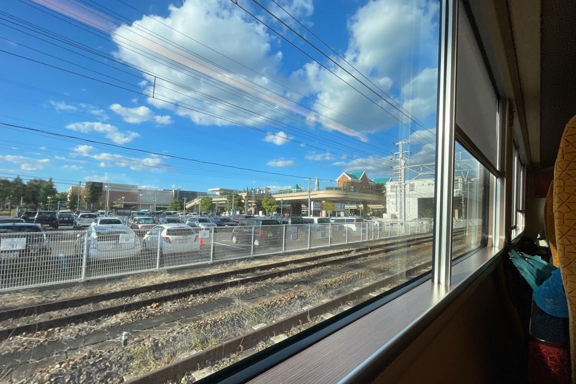 夕刻の景色は、静かに旅の終わりが近づいていることを告げ、心は少しそれに抗おうとする。これから新幹線に乗り換えるとはいえ、日常が一歩ずつ近づいてくる感覚は否応なく訪れる。日常が嫌いなわけでは決してない。むしろ旅に出る前には、「なぜこんな旅程を組んだのだろう」「ずっと日常にいたい」とすら思うこともある。それでも、旅の終わりが近づくと、また旅を続けていたいと思ってしまう。この列車の軽やかな走りと同じように、心もまた、旅によって軽くなっていた。