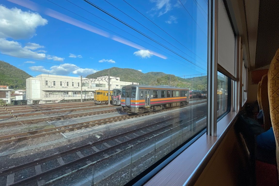 乗り心地は、まったく揺れないわけではないが十分に快適で、むしろ伯備線よりも山陰本線区間で感じた小刻みな揺れの方が印象に残った。381系時代は「酔いやすい」と言われ、筆者自身も一度軽く酔った経験があるが、新型車両ではその心配を感じることはなかった。