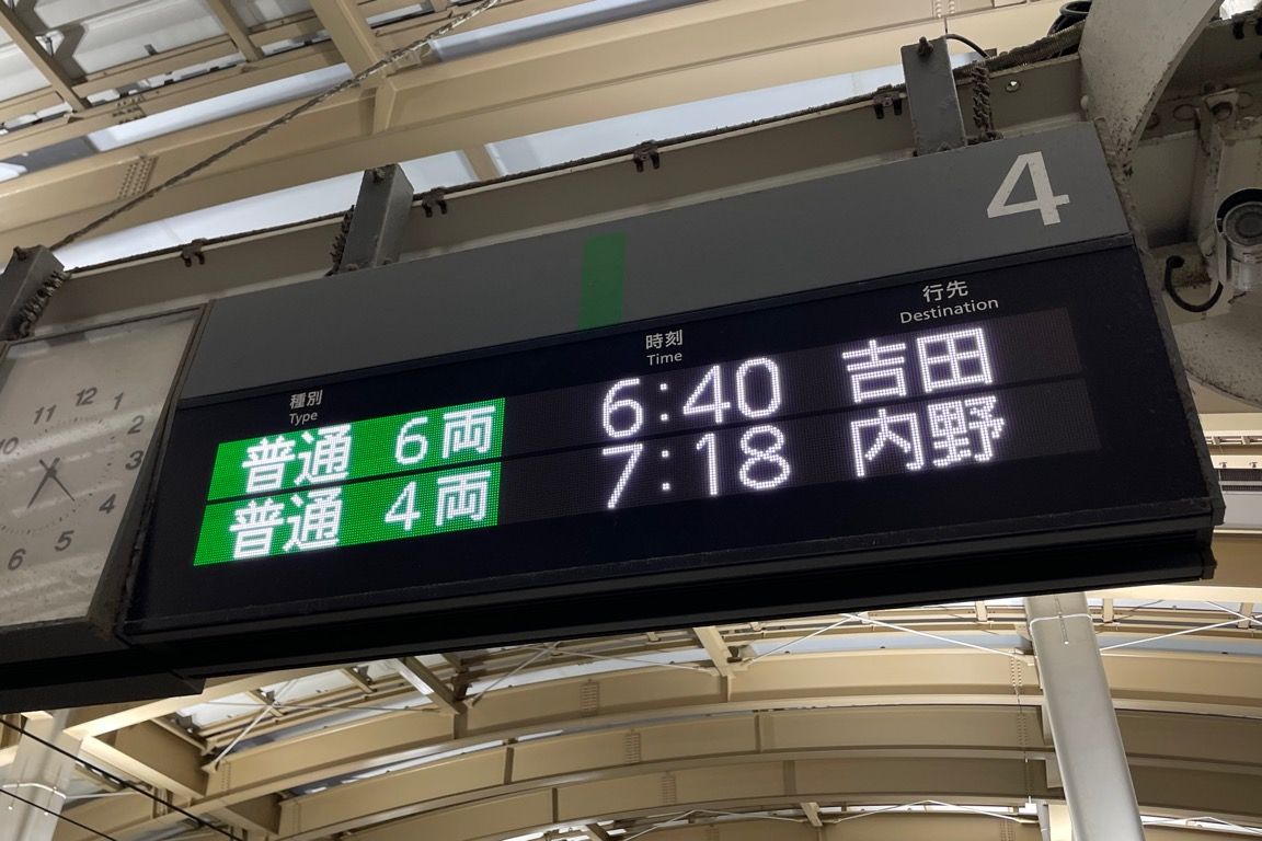 2日目はこの越後線と弥彦線の未乗区間を乗りつぶすことが目的であり、これから残り3方向へ乗車していくことになる。ただし、両路線とも区間によって列車本数が少なく、特に午前中は運転間隔が大きく空く時間帯がある。そのため、吉田からまずどこへ向かうかは、旅程全体を左右する重要なポイントとなった。