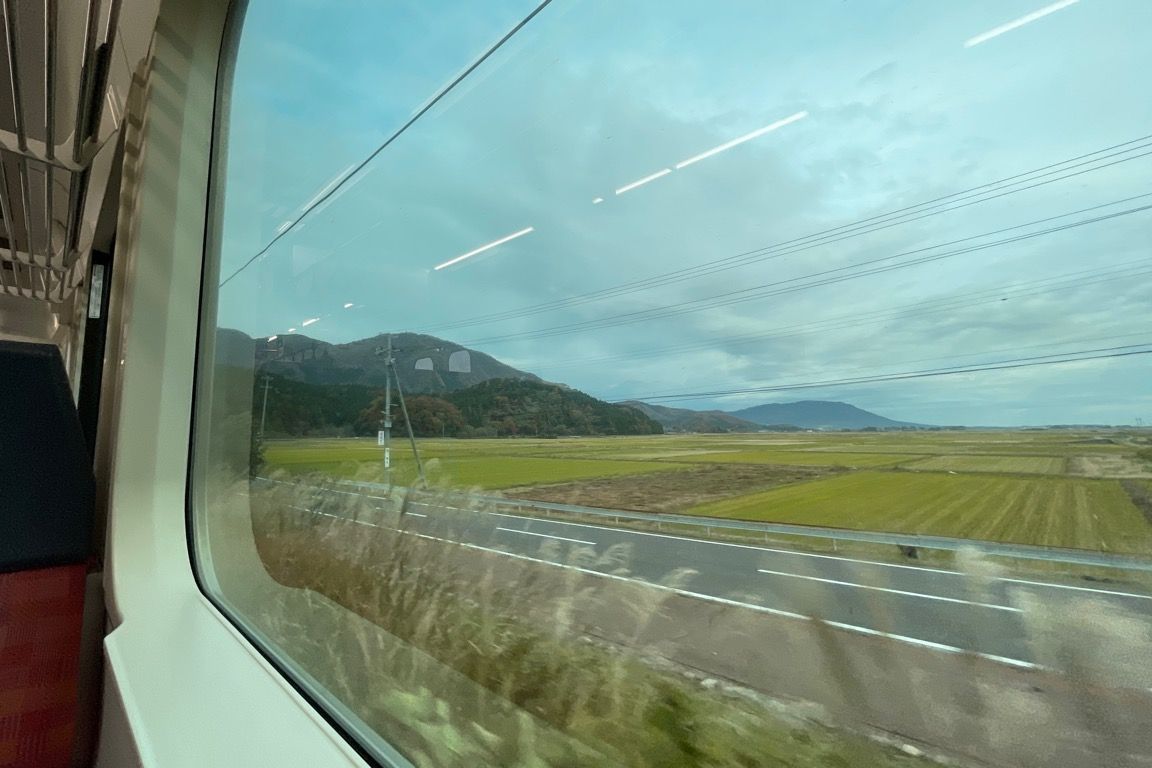 内野を出ると、次の内野西ヶ丘までは住宅街が続く。しかし、この駅を境に、越後線は新潟市街地から連なる住宅地の中を離れ、田園地帯へと飛び出した。視界が一気に開け、遠くにはこれから向かう弥彦山の姿が見える。朝日を浴びながら、列車は田園風景と小さな集落が交互に現れる景色の中を進んでいく。