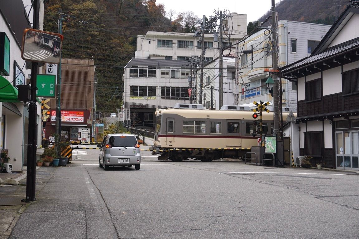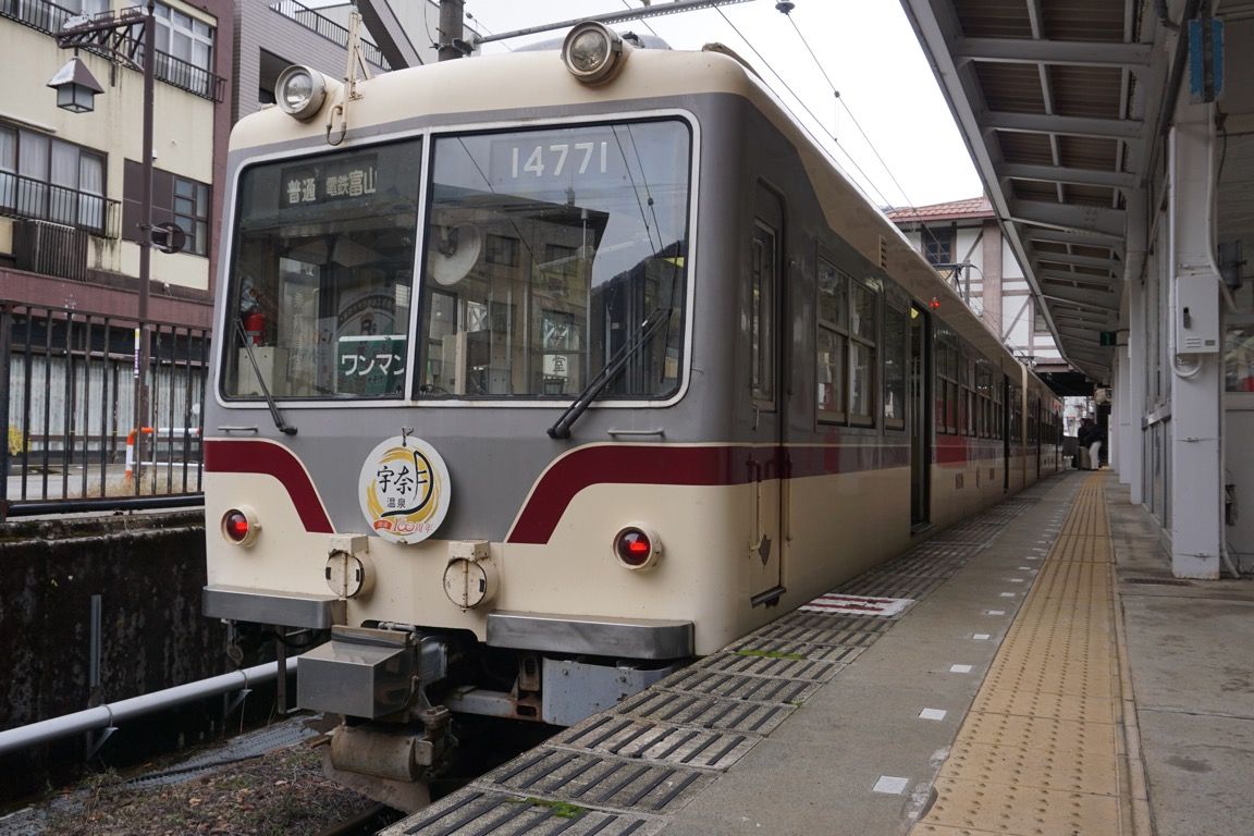 40分ほど散策した後、富山地方鉄道の宇奈月温泉駅へ向かう。ここからは朝に電鉄黒部から乗車した富山地方鉄道本線に再び乗車し、今度はこの路線を乗り通して電鉄富山へ向かう。