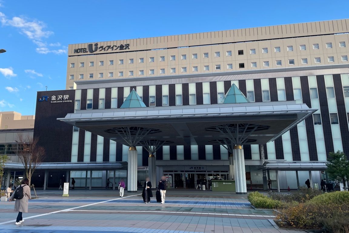 前回訪ねた時には北陸鉄道に乗車後、日本三名園の一つ兼六園を観光した金沢。今回は特段の用事はなく、純粋に乗り換えのために立ち寄った形だった。それでもせっかくなので外の様子も見ておこうと、一旦改札を出て駅前へ向かう。気兼ねなく改札を出たり入ったりできるのもフリーきっぷの大きな利点である。
