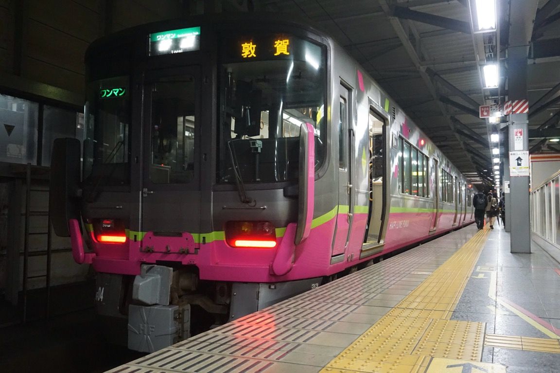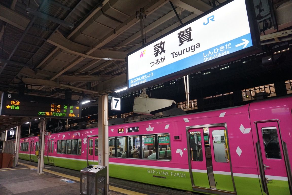 実は当初の計画では、この日の移動は福井までとし、福井駅前に宿を取っていた。しかし翌朝の行程に少し余裕を持たせたかったこと、また宿の選択肢が福井より敦賀のほうが多かったことから、直前に予定を変更し、この日のうちに敦賀まで移動することにした。