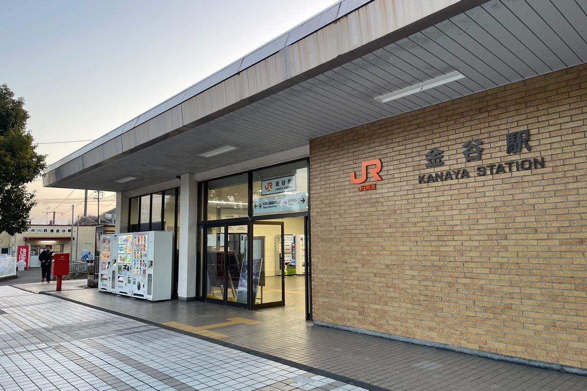 この時間帯は金谷駅を発着する列車の本数も比較的多い。東海道本線は隣の島田で静岡方面へ折り返す列車があり、反対の浜松方面も掛川で一部列車が折り返す。そのため、金谷と菊川の2駅は、周辺に比べるとやや列車本数が少ない。朝の時間帯の東海道本線では、「ホームライナー」も運転されているが、両隣の菊川・島田には停車する一方、この駅は通過となっている。ただ、駅は街の玄関口としての役割を果たしており、駅は有人駅でJR全線きっぷうりばも設置されている。