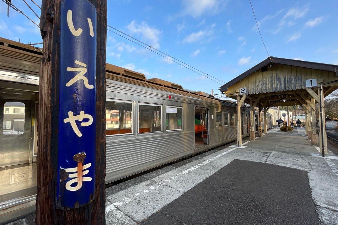 やがてホームには2両編成の列車が到着した。15人ほどの乗客が下車し、それと入れ替わるように折り返しの普通家山行きに乗り込む。