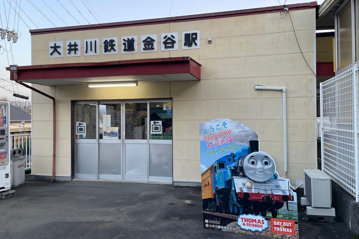藤枝から3駅進み、金谷で列車を下車した。列車は直前に大井川を渡り、その後、上り坂を進んで、少し標高の高い場所にある金谷へと到着する。これから乗車する大井川鐵道大井川本線の線路も駅の手前で近づいてくる。この鉄路の先にどんな景色が広がるのか期待が高まる。