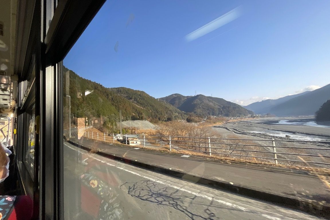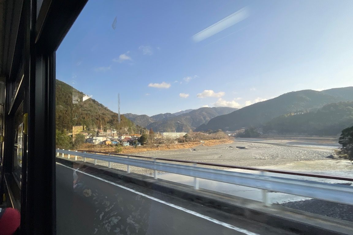 バスは川の対岸に位置する身成地区を抜け、車窓左手に大井川を眺めながら進む。やがて川根温泉ホテル前に到着し、2人の乗客を乗せた。ここにはホテルと道の駅、温泉施設があり、この地域の観光拠点となっている。