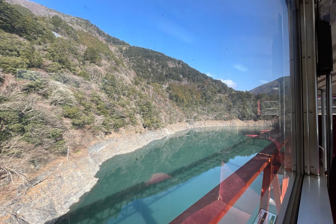 接岨湖を車窓に観光地として有名な奥大井湖上へ