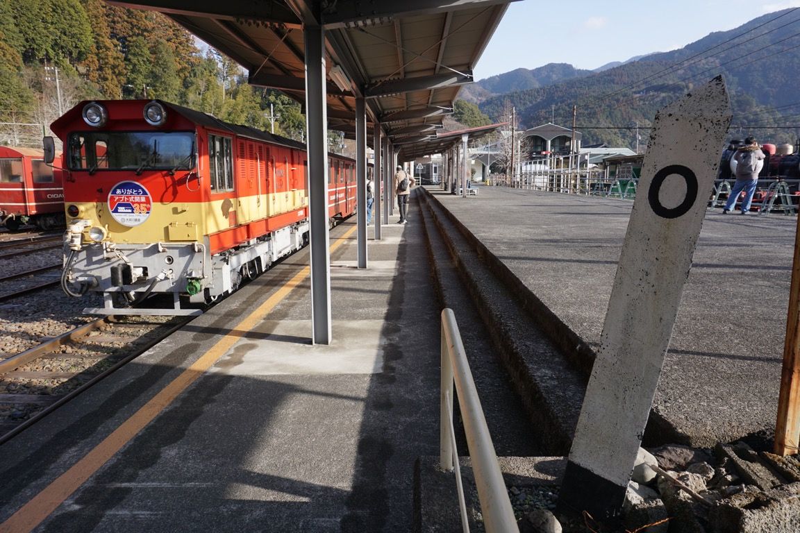 藤枝駅前のホテルを早朝に出発したあと、金谷駅から大井川鐡道の旅を始めた2日目。その後、家山で川根本町が運行する町営バスへ乗り継ぎ、千頭駅に到着した。ここからは大井川鐡道が運行するもう一つの路線、井川線に乗車した。