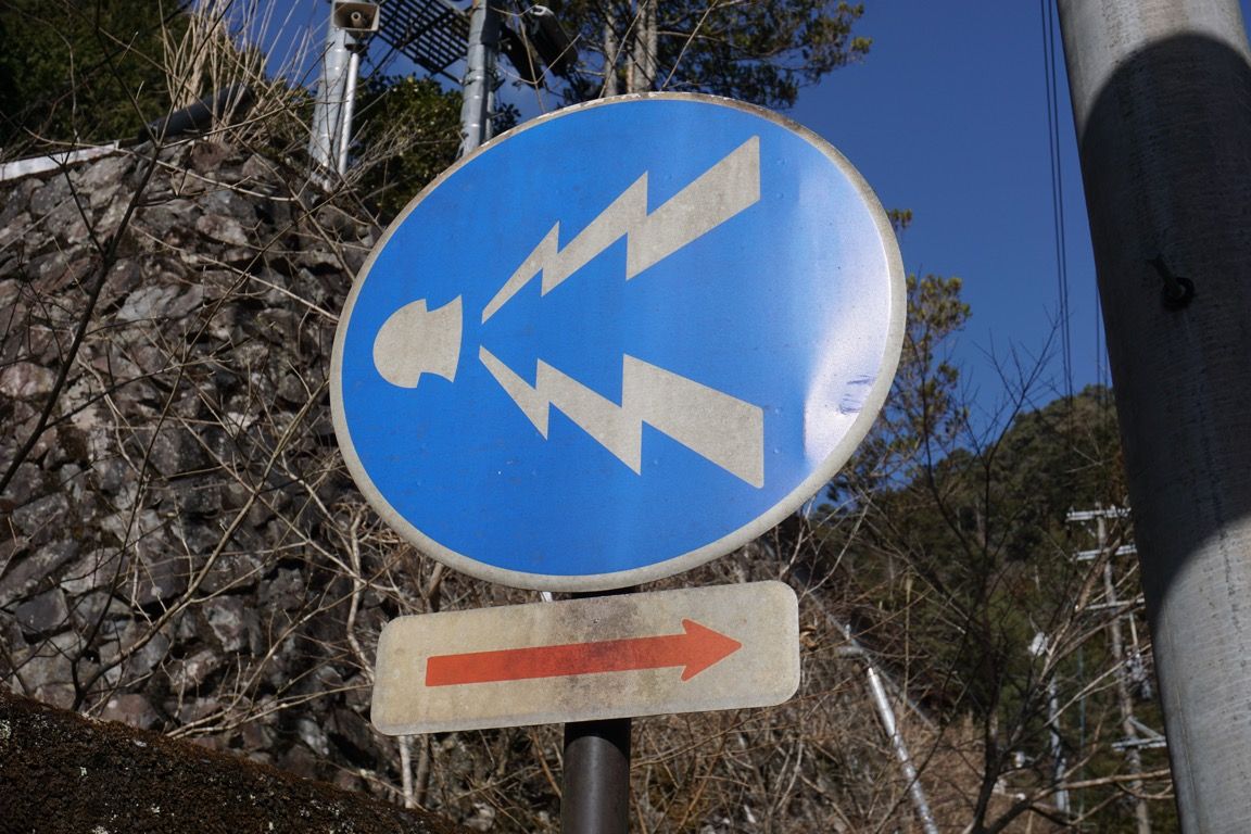 筆者の住む地域では周辺の山間部を含めて、目にする機会がなく、実物を見るのはこれが初めてだった。子どもの頃、免許更新でもらった冊子の巻末に載っていた標識一覧を眺めるのが好きだったことを思い出す。いつか実物を見てみたいと思っていたが、まさか自ら運転するのではなく、公共交通で訪れた地で初めて目にするとは、少し意外な気もした。