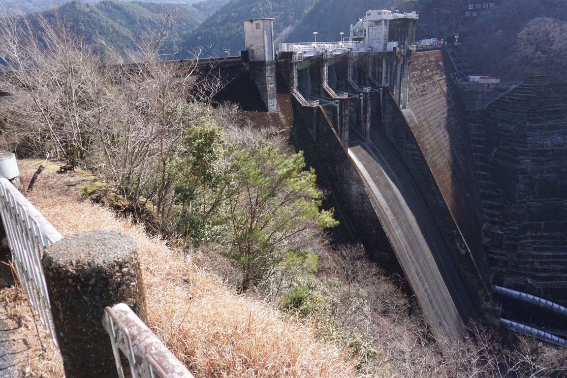 県道の交通量は少なく、ときおり車が通る程度である。ダム上を越えてトンネルへ進めば静岡市街地方面へ至る。先ほど目にした自主運行バスも、この堤体上を通って運行されている。