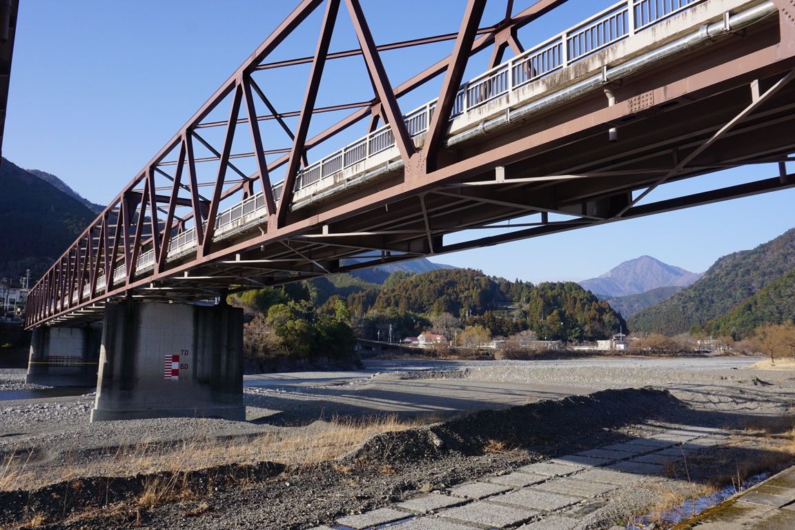 列車を見送った後は、大井川を渡る川根大橋へ向かった。千頭の街は駅周辺の川の両岸へ広がっている。特に駅北側と対岸側に住宅が多く、対岸側が中心部になっているらしい。