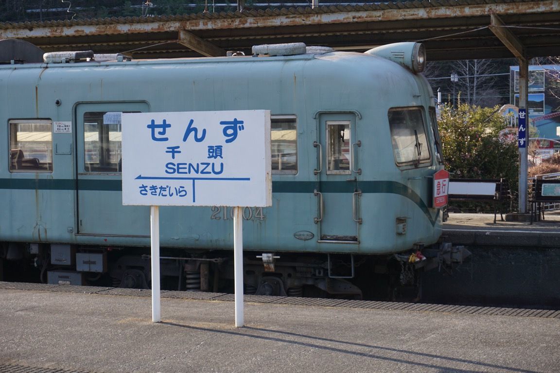 井川からちょうど2時間で千頭に到着した。千頭駅に留置されたトーマス機関車の出迎えを受け、ホームに降り立つ。時刻は14時20分。朝この駅を発ったときは穏やかな陽気に包まれていたが、冬の日差しはすでに傾き始めている。