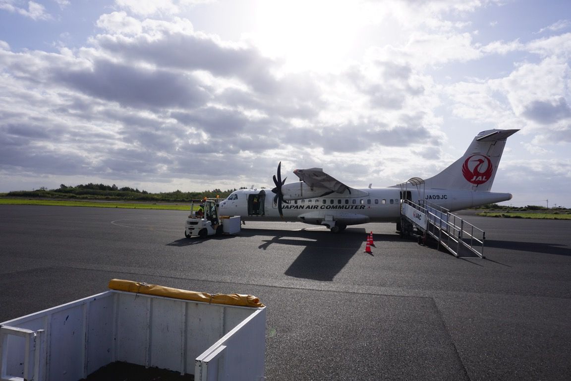 今回利用する飛行機のうち、行きと帰りの便は特典航空券を利用した。やはり離島旅では天気を無視できない。特典航空券であれば1,000円で払い戻しができるため、よほど悪天候が続くようであれば、旅行はキャンセルするつもりだった。離島は天気が変わりやすく、過去の天気予報を見ても晴れが続く時期はそれほど多くない。しかし、3月のこの時期であれば毎年比較的天候が安定しているようだったため、この時期に旅に出ることにした。結果、雲が多いという予想ではあったものの、天気が大きく乱れる心配はなく、予定どおり旅に出ることができた。(写真は以前、鹿児島空港で撮影した搭乗機JA09JC)