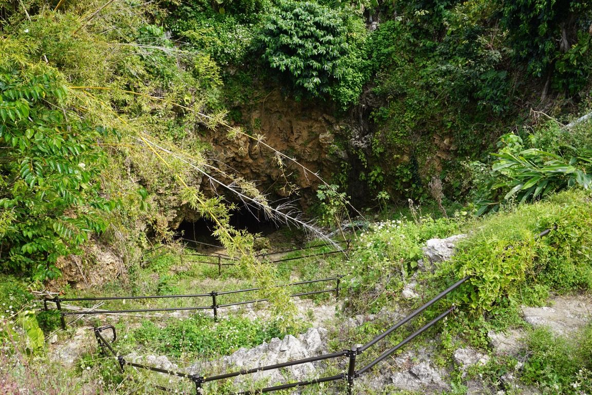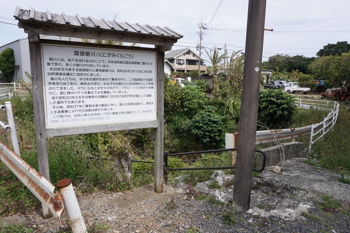 海沿いの道路へ出るため、集落の中を通る細い道へと入る。途中には「国頭暗川(くにがみくらごう)」という史跡があった。1日目に永嶺線で島西部の住吉地区を通った際、運転士さんが説明してくださったように、沖永良部島はサンゴ礁が隆起してできた島のため、地表を流れる川は少なく、水は地下へと染み込み、地中を流れている。