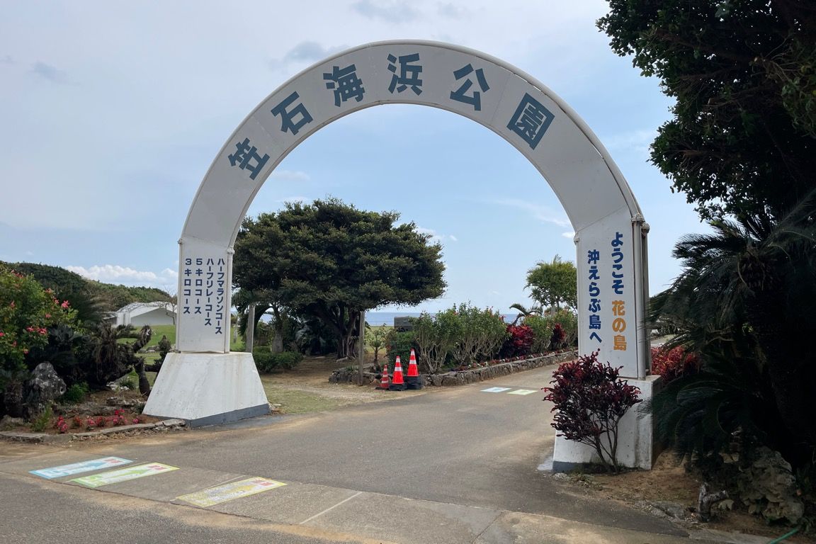 前日はここを会場に、この時期の島の一大イベントである「花の島沖えらぶジョギング大会」が開催されていた。公園のステージ広場は、ちょうど撤収作業が終わったばかりのようで、作業を行う人たちと入れ違いで公園を訪れる形となった。