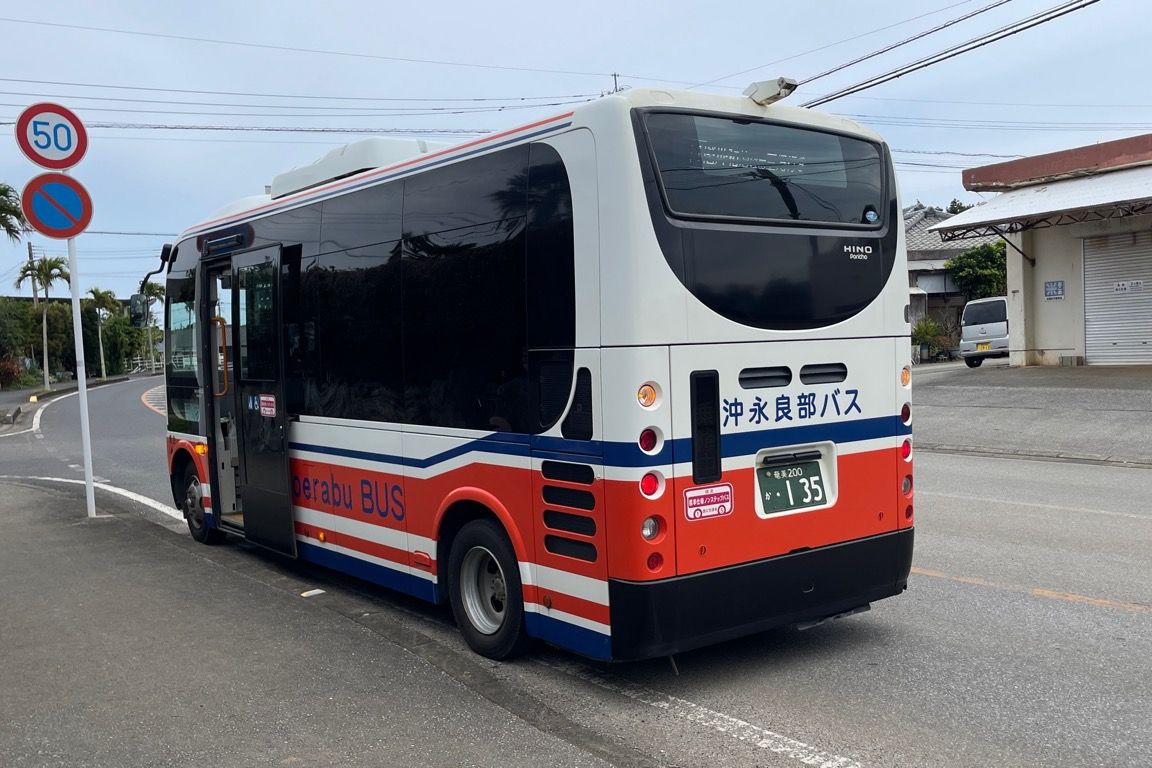 乗車した場所から国頭まではおよそ5分ほど。すでに車内には地元の乗客が数名乗っており、その人たちとともに国頭を目指す。前日は迂回運行により一部異なる経路を通ったが、この日は通常ルートでの運行となった。バスは国頭の集落内をV字を描くように走り、やがて国頭のバス停に到着する。ここで筆者を含めた全員が下車し、沖永良部バスでの移動はこれが最後となった。
