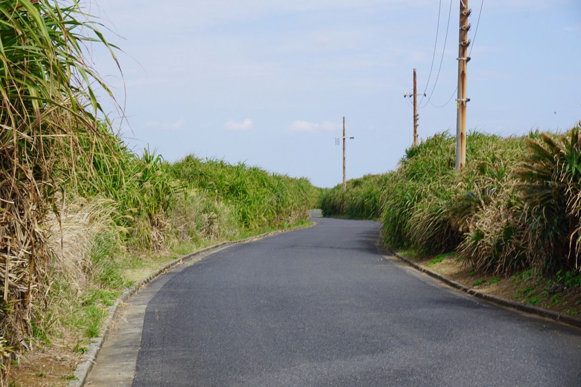 フーチャからは沖永良部空港へ歩いて戻る。本来であれば畑の中を抜けていくのが最短ルートだが、最後まで海の景色を楽しみたいと思い、あえて海沿いの道を選んだ。フーチャから続く道にはガードレールも柵もなく、まるで海へと続いていくかのように海岸線に沿って延びている。遠くには、うっすらとこれから向かう徳之島の島影が見えていた。次の島はどんな場所なのだろうか、そんな期待が静かに膨らんでいく。沖永良部空港からは、この海の向こうへと、わずか15分ほどのフライトで渡ることになる。