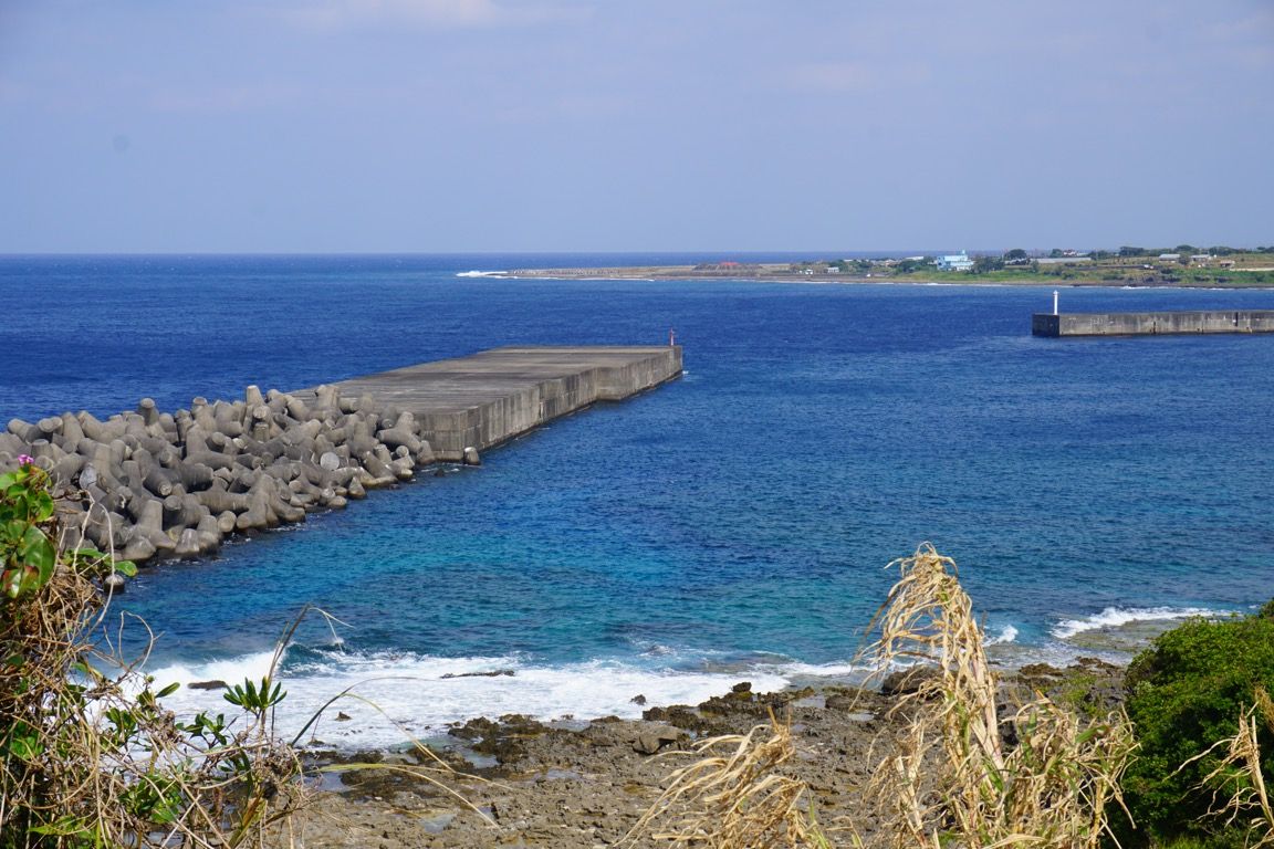 何より美しいのはこの海の青さである。コバルトブルーとエメラルドグリーンの海が見事なグラデーションを描いていた。この水平線の先に、昨日までいた沖永良部島がある。沖永良部島からは山が聳える徳之島が西側からも見えた一方で、こちらからは比較的平坦な沖永良部島は、逆光であることもあり確認するのは難しい。