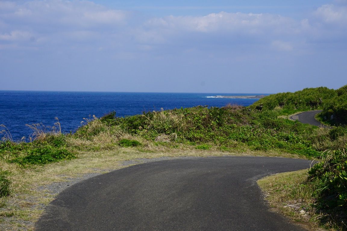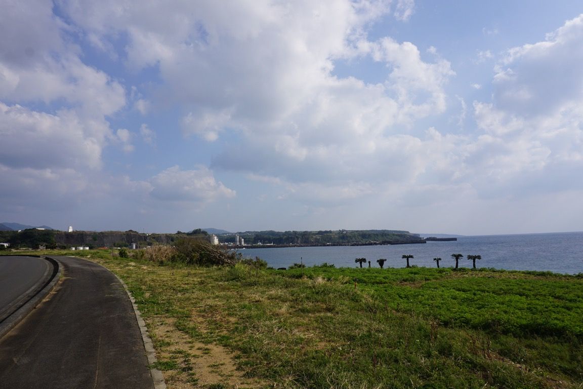 平土野の街を後にし、空港へ向かって歩いていく。海沿いの道路はカーブを描きながら、坂道の向こうへと続いている。太陽の光はまぶしいが、海を眺めながらの道のりも悪くない。車の通りは多くなく、農業用のトラクターとゆっくりとすれ違った。