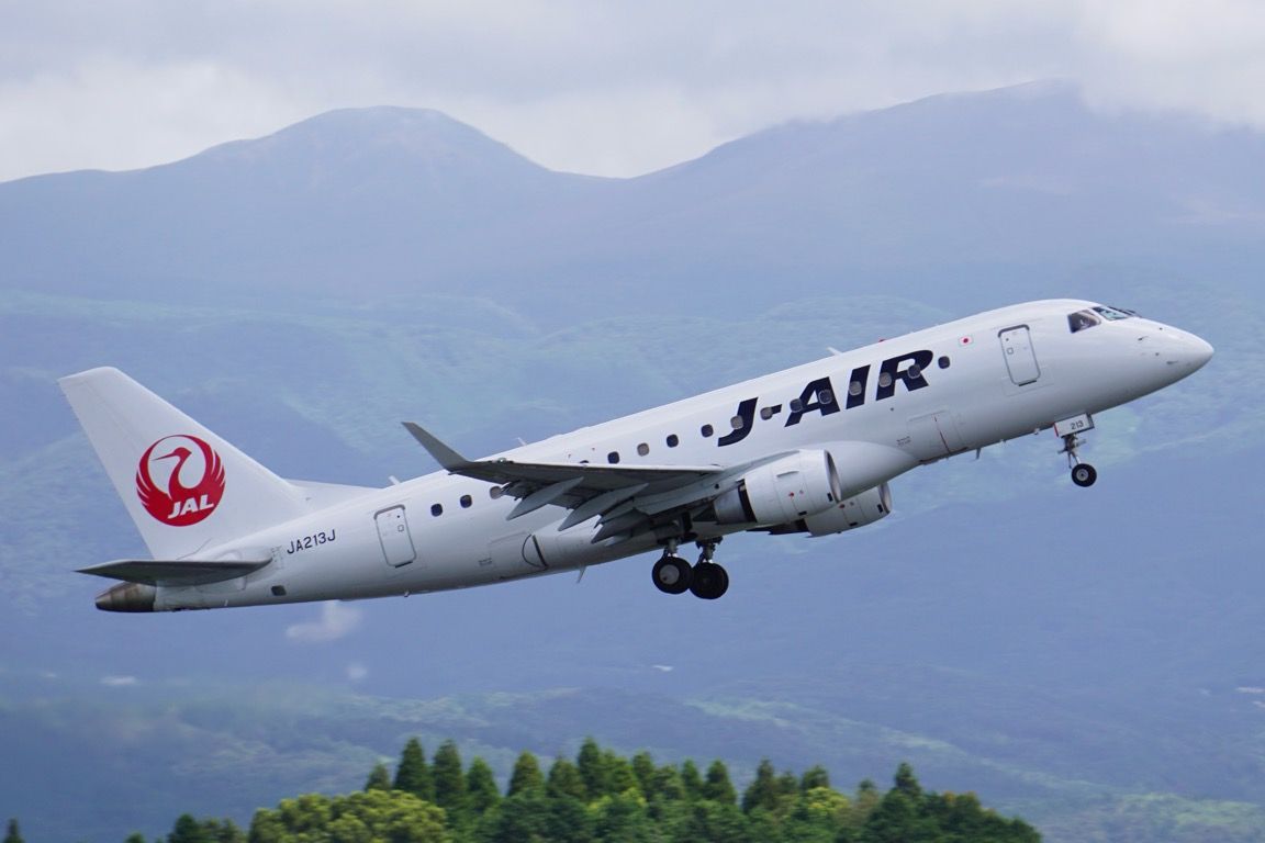 なお、J-AIRは沖縄県内には就航しておらず、徳之島空港が最南端の就航地となっている。一方、最北端は女満別空港で、道東から奄美まで国内各地へ就航しているのが特徴である。基本的には中小規模の路線を担うが、宮崎・山口宇部・秋田-羽田線にも就航しており、羽田路線から離島路線まで幅広く活躍している(写真は過去に撮影した搭乗機)。