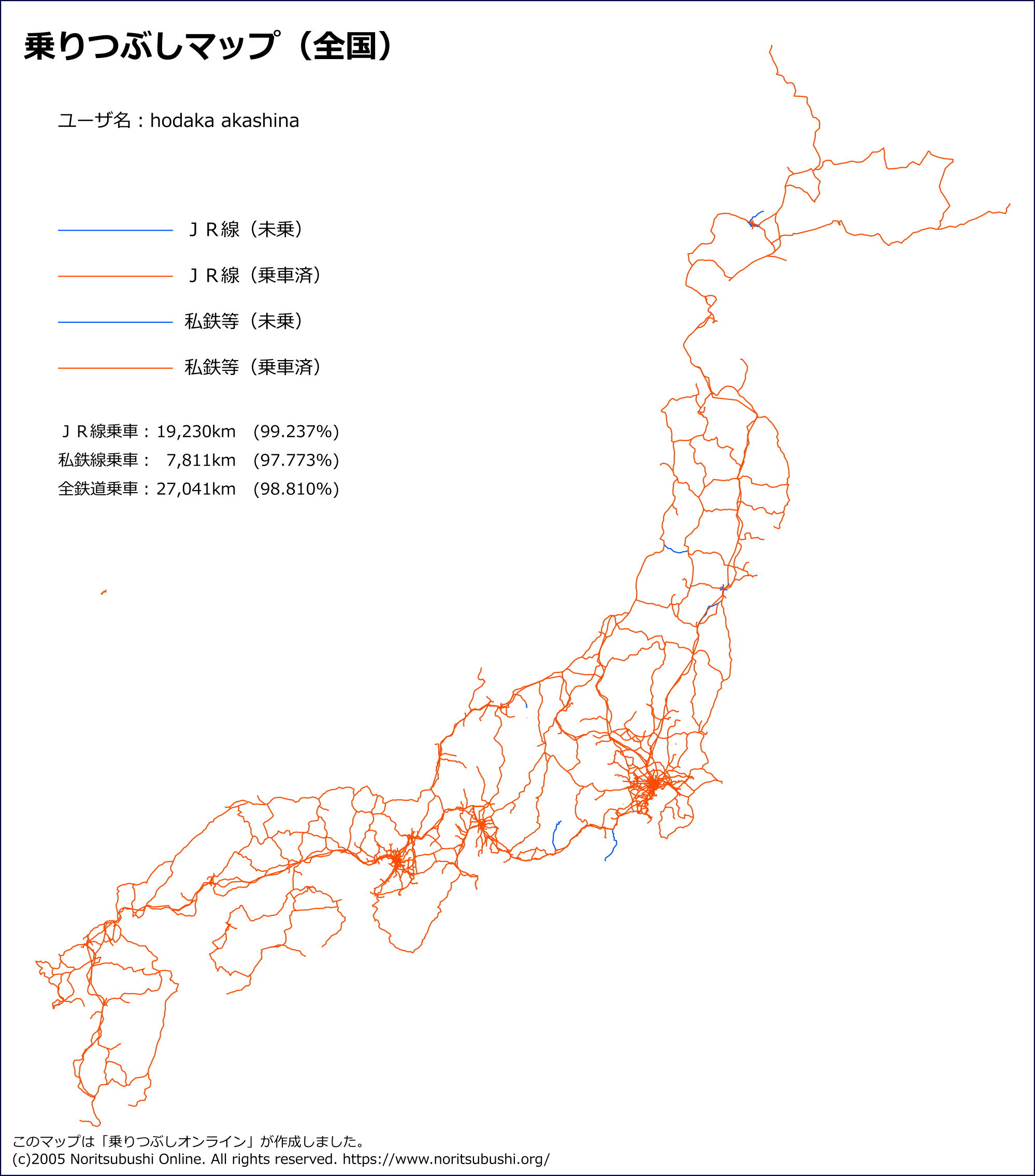 全国の鉄道の乗りつぶしを趣味とする筆者の個人的な乗りつぶしの記録