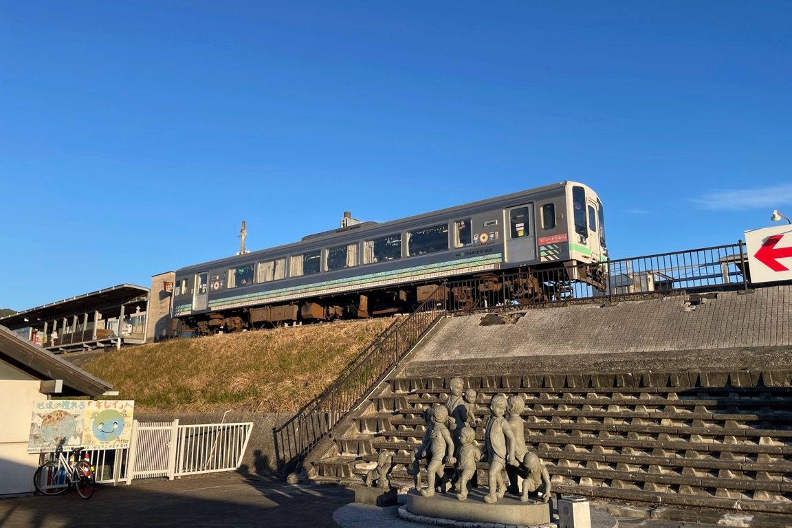 お手洗いを済ませて、次のバスに乗車する準備を整え、バスを待っていると、ごめんなはり線の列車がやってきた。写真は奈半利発高知行きの快速列車。ここで後免発奈半利行きの普通列車と行き違う。ごめんなはり線に乗車した5年前の旅では、往路で高知発奈半利行の普通列車に乗車し、帰りに奈半利発高知行の快速列車を利用した。往路はJR四国の1000形、帰りは写真の9640形だったと記憶している。その日も今日のような快晴で、車窓には青い海が広がっていた。往路ではボックスシートで向かい側に座っていた人にきれいですねと話しかけられたのを覚えている。ボックスシートというのはちょっと気まずさを感じる部分があるが、ローカル線においては乗客同士の小さな交流があったりもして、それはそれで楽しい。