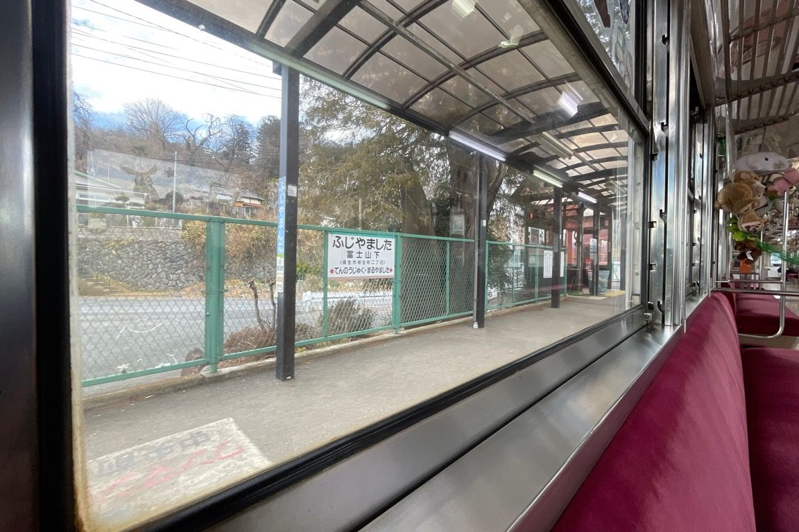 桐生球場前を出て、天王宿に停車した列車は、次に富士山下に停車。この駅はその駅名ゆえにとても有名な駅である。こう書いて「ふじやました」と読むのだが、漢字だけ見るとあたかも富士山の最寄り駅のように見えるので、以前は外国人観光客が富士山に来るつもりが間違えてきてしまったことが何度もあるらしい。国内では駅名がランドマークの最寄り駅と似ていて紛らわしい駅がいくつかある。りんかい線の青海駅と青梅線の青梅駅、阪神なんば線のドーム前駅と近江鉄道本線の京セラ前駅はもはや鉄板ネタだが、ここもそれに並ぶ間違いの鉄板駅として知られる。