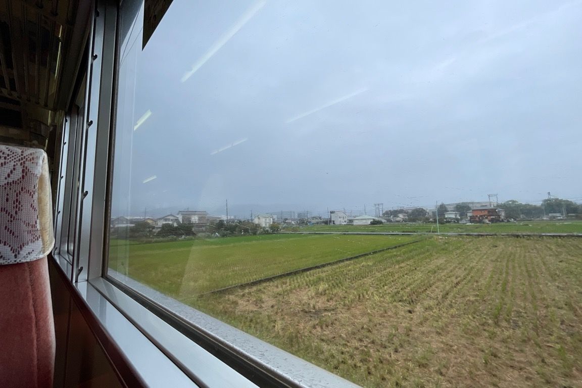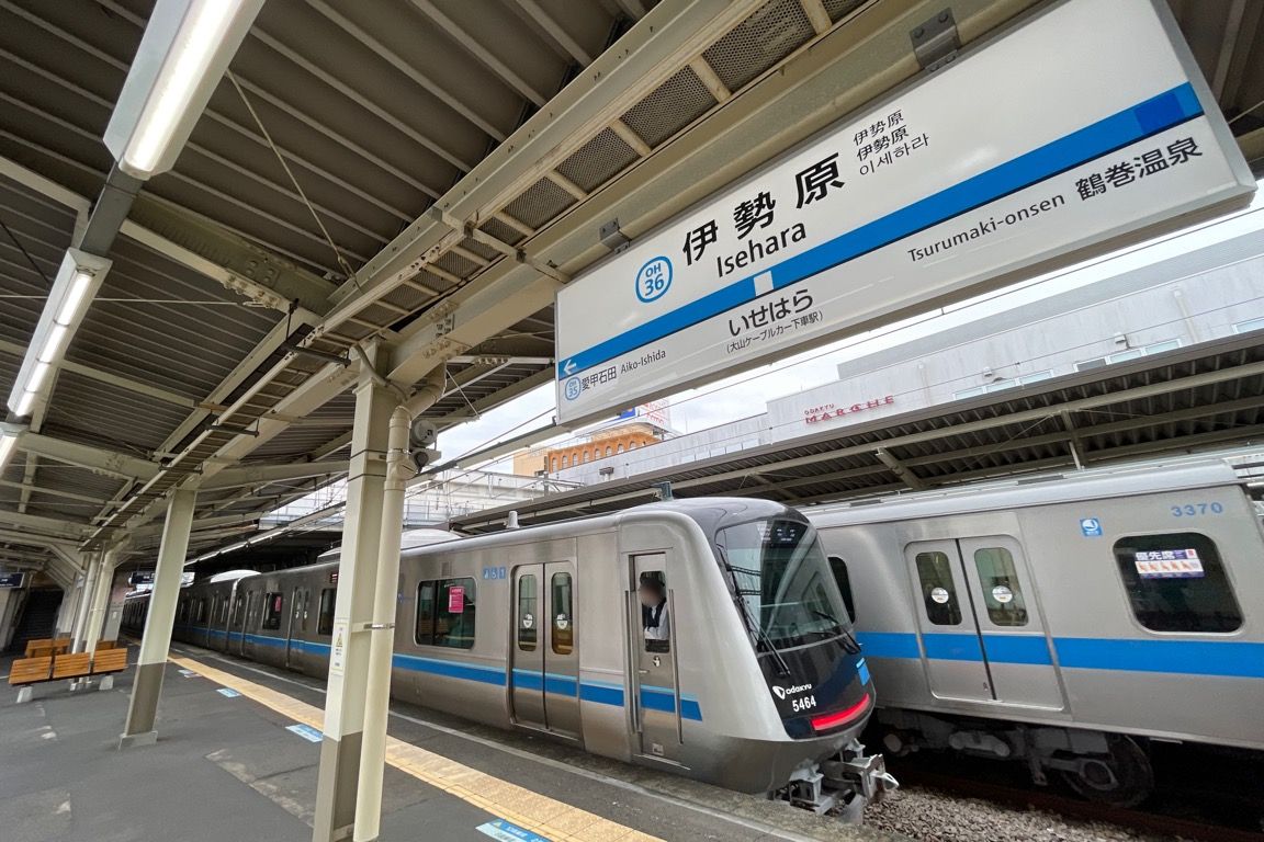 新松田から伊勢原までの所要時間はおよそ20分。乗車したのは小田急の新型車両5000系で、列車は山がちな景色の中を走行する。各駅の階段に近い中間車両は新松田到着時点でほぼ座席が埋まっていたが、最後尾の車両はとても空いており、快適に移動できた。伊勢原到着前、車内で誰かの地震速報が鳴って一瞬ヒヤリとしたが、緊急停車するほどの地震ではなく一安心。伊勢原には正午過ぎに到着した。