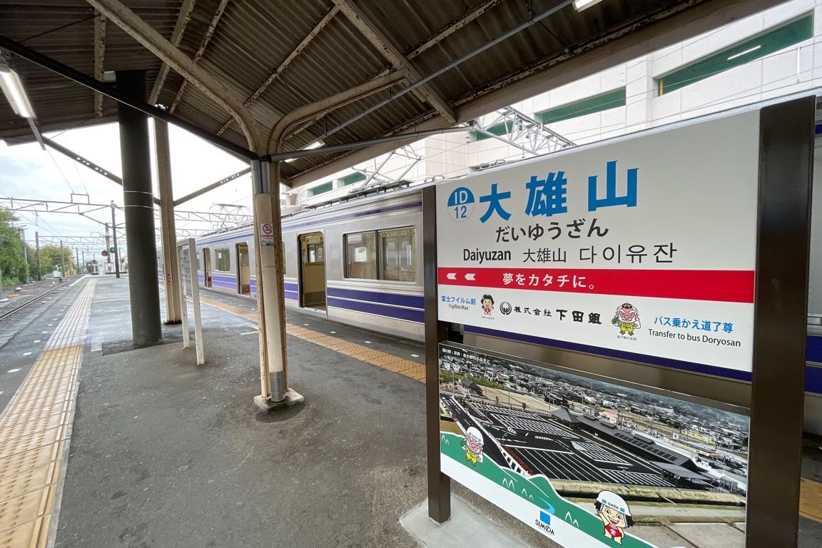 塚原を出ると列車は狩川を渡る。その先には一瞬田畑が広がる区間があるが、奥には工場群が立ち並び、都市郊外の景色が広がっている。次の和田河原と、その次の富士フイルム前は、その駅名の通り富士フイルムの工場、研究所の最寄り駅となっている。大雄山線が走る南足柄市は富士フイルムの創業の地であり、大雄山線の沿線はいわゆる同社の企業城下町として栄えてきた。南足柄市から小田原への通勤・通学だけでなく、東海道線沿線などから富士フイルムの工場や研究所への通勤にも大雄山線が利用されている。富士フイルム前を発車すると、列車はまもなく終点の大雄山に到着。大雄山線の完乗を達成し、これで関東地方の普通鉄道を乗り終えることとなった。