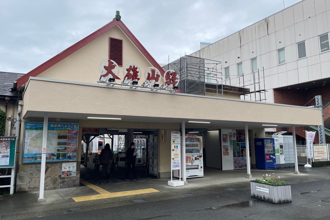 乗換案内アプリで「大雄山」と入力すると、伊豆箱根バスの「大雄山駅」バス停のみが表示される。しかし実際この駅のロータリーには箱根登山バスの方が多く発着している。では、箱根登山バスはアプリに登録されていないのかというと、そうではない。実は、そもそもバス停の名前が異なっており、箱根登山バスの方は「関本」と呼ばれている。伊豆箱根バスの「大雄山駅」と箱根登山バスの「関本」は、同じ場所にあり、乗り場が異なるだけである。関本は大雄山駅がある周辺の地名である。