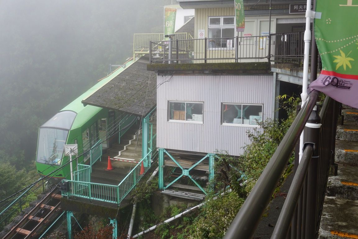 大山ケーブルバス停から15分ほど、息を切らしながら階段を上り続け、ようやく大山ケーブル駅に到着した。航空写真である程度距離があることは分かっていたが、ここまで階段続きとは知らず、思った以上に体力を消耗した。ちなみに翌日に乗車した筑波山ケーブルも、バス停から駅まで似たように階段が続いており、最後まで残った2路線はいずれも駅にたどり着くまでが大変な路線だった。