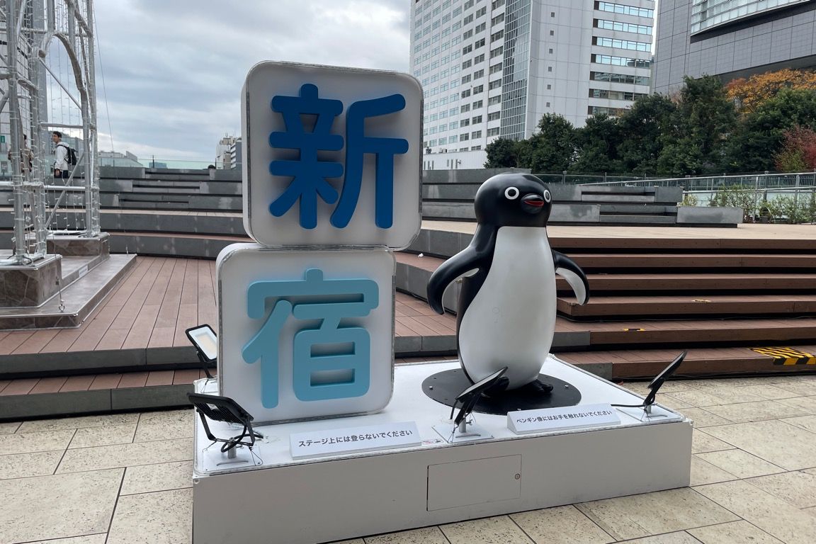 この日は、次に乗車する乗り物が、この日の最後の移動手段となる。少し早めではあるが、ここで食事を済ませ、旅立ちの準備を進めることにした。新南口のテラスには、数体のSuicaペンギンが鎮座している。旅の数週間前には、このペンギンキャラクターのSuicaからの引退が発表されたばかりで、おそらくこのテラスに設置されている銅像やモニュメントも、いずれ撤去されるのだろう。