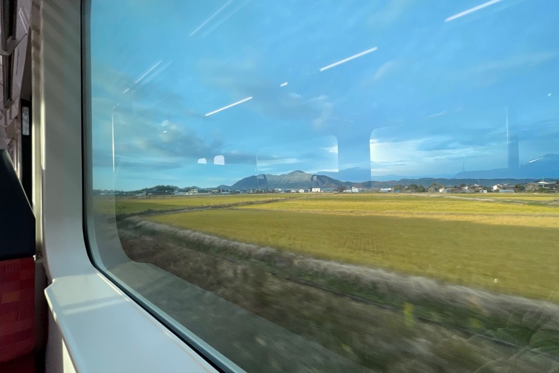 内野を出ると、次の内野西ヶ丘までは住宅街が続く。しかし、この駅を境に、越後線は新潟市街地から連なる住宅地の中を離れ、田園地帯へと飛び出した。視界が一気に開け、遠くにはこれから向かう弥彦山の姿が見える。朝日を浴びながら、列車は田園風景と小さな集落が交互に現れる景色の中を進んでいく。