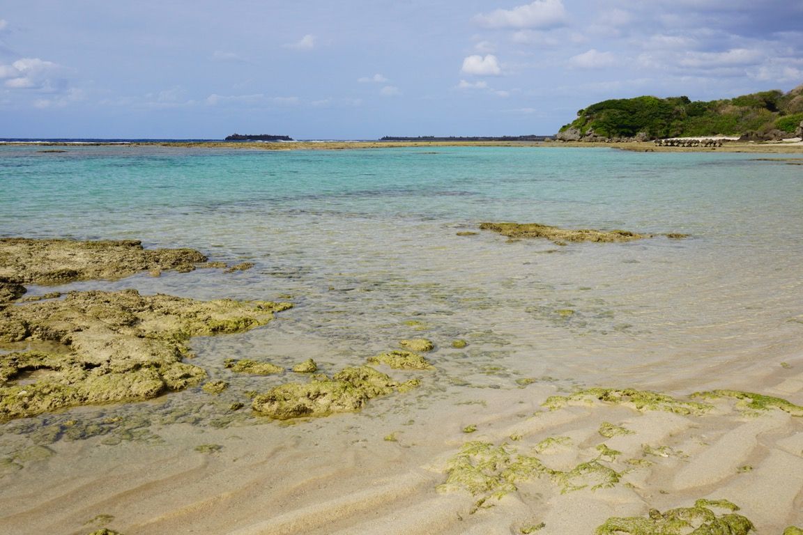 さざ波に洗われた砂浜には、細かな波状の模様が幾重にも描かれている。この場所を訪ねようと思ったのも、やはりこの海の色を自分の目で確かめてみたかったからだ。数年前、初めて沖縄を訪れた際、名護で珊瑚の砂浜を歩いたことを思い出す。あの時はあいにく天候に恵まれなかった。だからこそ今回の旅では、その記憶を上書きしたいという思いがあった。