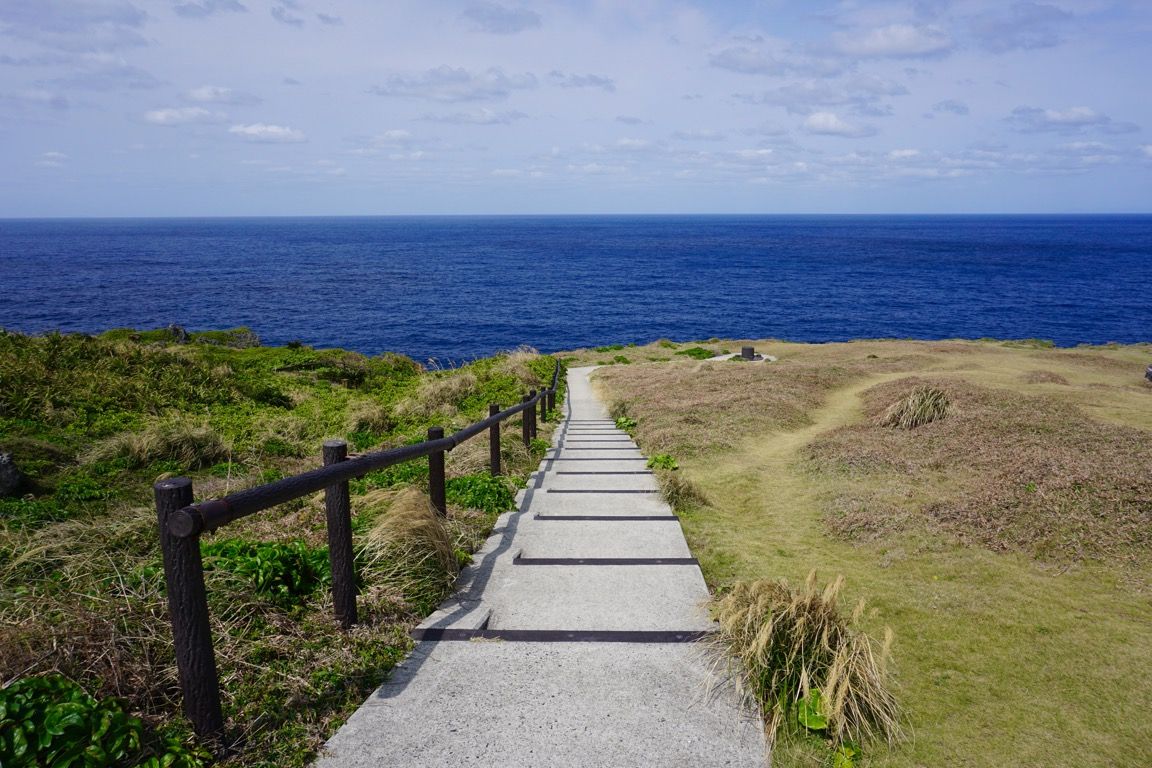 しばらく展望台からその景色を眺めた後、階段を降りて岬の先端へと向かう。柵は設けられていないが、断崖の間近まで歩み寄ることができる。視界いっぱいに広がるのは東シナ海の深い青。時折、強い風が岬を吹き抜ける。波の音に耳を澄ませながら、一歩一歩ゆっくりと足を進めていく。