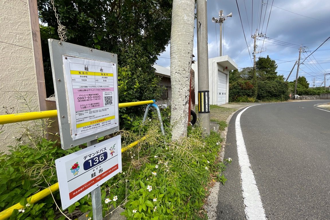 デマンドバスは13時から17時30分(最終降車)まで運行されており、島内全域に設けられた141か所のバス停で利用できる。ただし、空港線・国頭線が停車するバス停同士の区間は利用できず、必ず片方はデマンドバス専用の停留所である必要がある。停留所は市街地や病院、スーパーの前、各集落に設置されているほか、観光スポットにも設けられている。主に知名・和泊から各集落への帰宅手段としての役割が大きいが、観光にも十分活用できる。