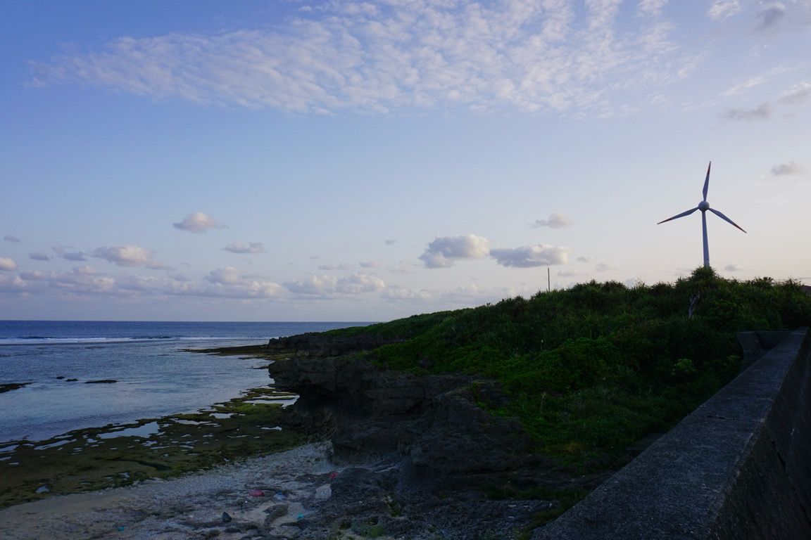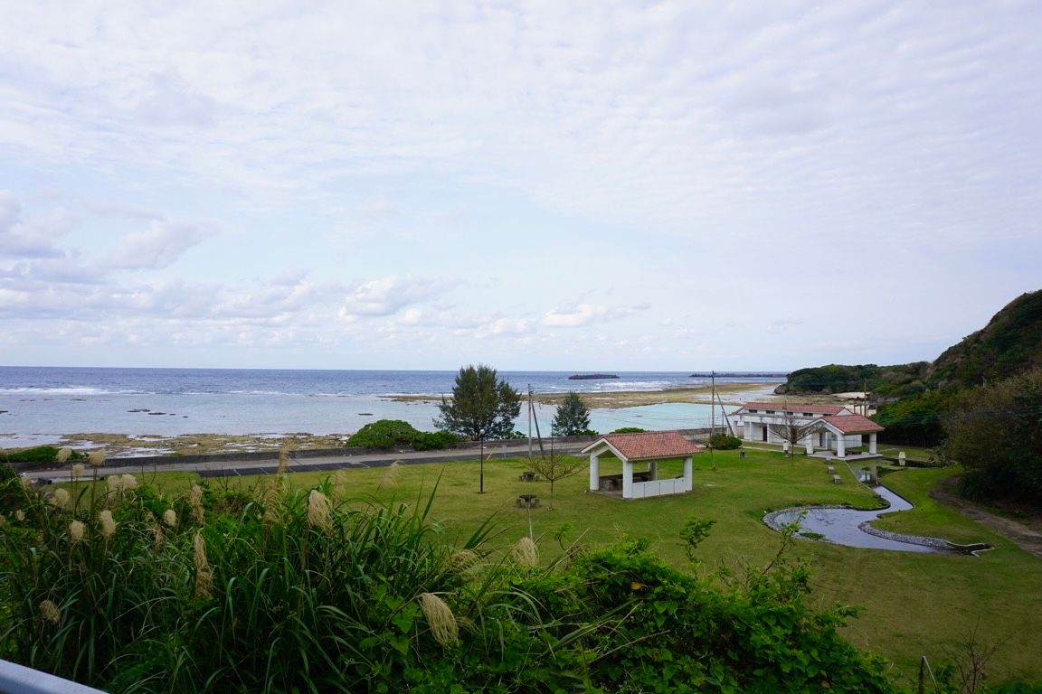 その後は堤防へ上がり、しばらくこのビーチを見下ろしながら過ごした。ありがたいことに近くに自販機が設置されていて、ここで飲み物を買い喉を潤す。島の穏やかな時間の流れに身を委ね、何もせずにただ景色を眺める。晴れ間と曇り空が交互に訪れる空の下で、海の色もまた刻々と表情を変えていく。気がつけば30分以上が過ぎていた。名残惜しさを感じつつも、そろそろ次の目的地へ向かう時間である。ここからは島を横断し、再び和泊の街へと戻っていく。