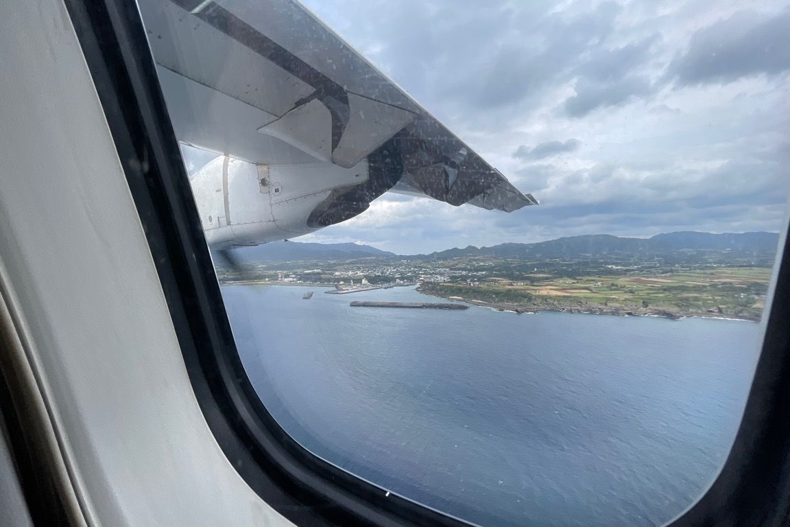 空港近くの海岸線をかすめるようにして大空へと上がる。通常であればここから高度を上げていくが、この便の目的地である徳之島空港は、飛行機からすれば目と鼻の先にある。飛行高度はおよそ400mと、東京スカイツリーの展望台よりも低い高さで飛行する。海が真下に広がり、風の影響で時折機体が揺れる。白波を立てる海面がすぐそこに見え、通常のフライトでは味わえないスリルがあった。