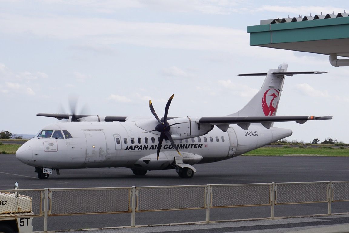 機体を降り、駐機場を歩いてターミナルへ向かう。定期航空協会加盟の航空会社が保有する機材の中では最小クラスとなるATR42-600。遠目には小さく可愛らしいが、間近で見ると意外なほど大きい。滑走路側を向いて降機するため、尾翼や機体後部を眺めながら歩くという、少し珍しい体験もできた。