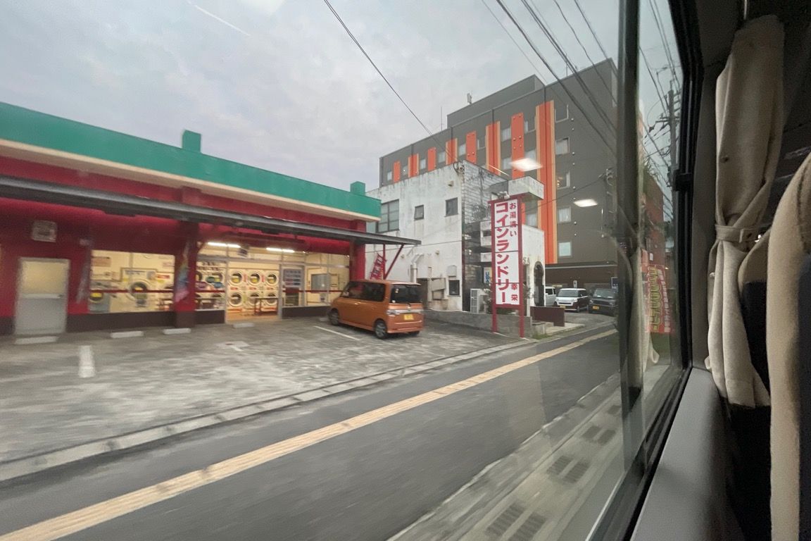 亀津の市街地へ入ったバスは、時計回りに市街地を巡っていく。亀徳新港で1人が下車し、その後、徳之島町役場前で2人が下車した。亀津の市街地はコンパクトながらも意外なほど都会的で、島の中心地であることを感じさせる。夕方のこの時間帯は街に灯りがともり始め、多くの車が行き交うと同時に、歩く人の姿も見られ、賑わいを見せていた。